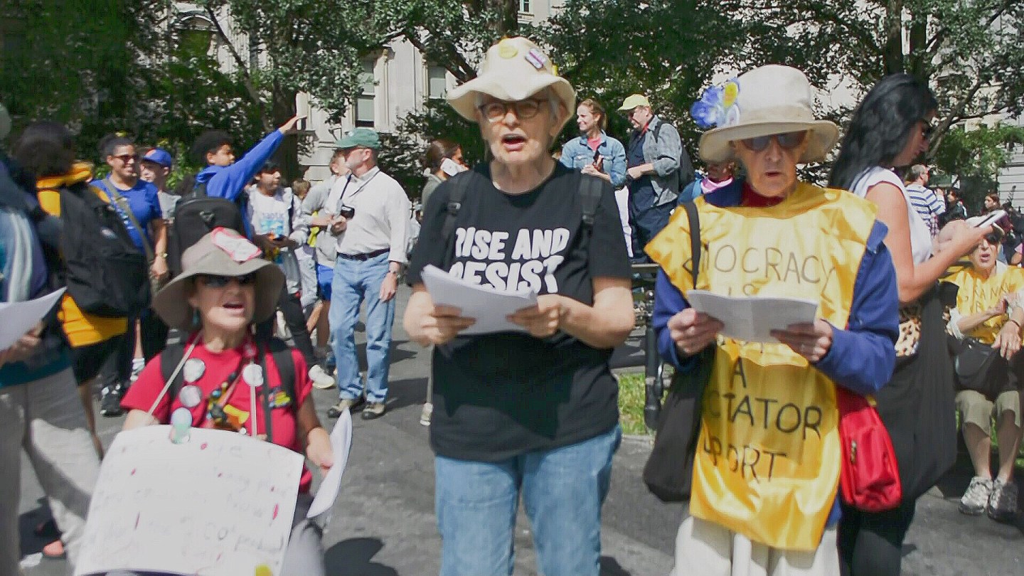 As the world focuses on Greta Thunberg, Jamie Margolin, Xiye Bastida, Alexandria Villasenor, the Sunrise Movement, and the thousands and thousands of teenagers and children striking, marching, and protesting, the Raging Grannies’ New York metro area chapter were out in the heat en masse to call for climate action, too.