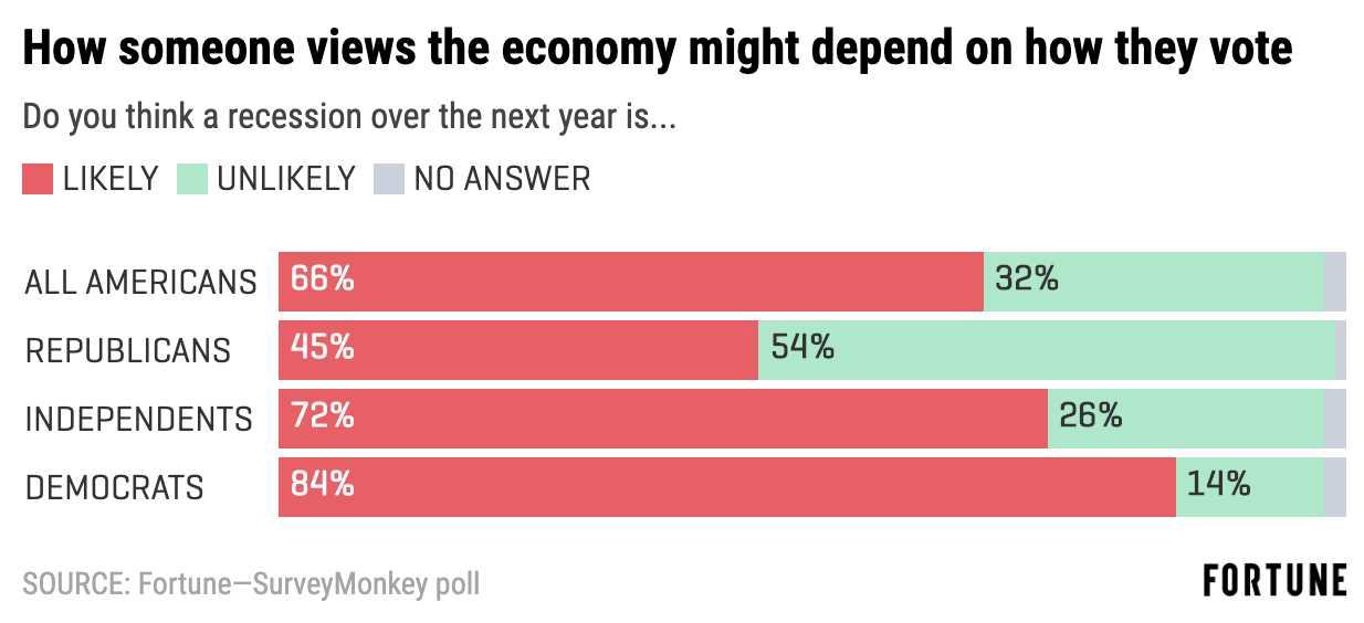 - … of Republicans think a recession will occur over the coming 12 months, compared to 84% of Democrats.