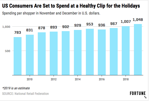 The NRF expects a strong November and December period, forecasting retail sales to be up about 4%. Shopify, a tech company that supports the e-commerce sites of brands like Allbirds, expects the average American shopper to spend $550 this weekend.