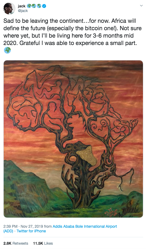 In case you missed it: Twitter and Square CEO Jack Dorsey plans to livein Africa for three to six months next year, according to a tweet. Dorsey already spent much of November on the continent, chatting with entrepreneurs and discussing crypto in countries such as Ghana, Nigeria, Ethiopia, and South Africa.