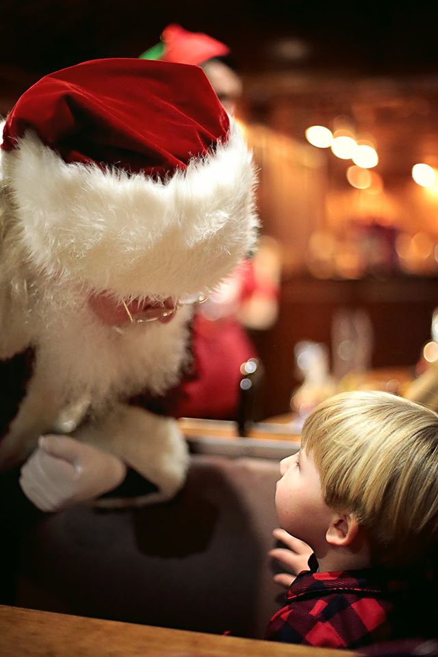 Once the train takes off, hot chocolate and freshly baked chocolate chip cookies are served on board by dancing waiters, and the book is read aloud to passengers over the loudspeaker while chefs and waiters walk through with large copies of the book kids can see. Many of the kids bring along their own copies to read along.