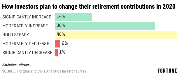 Investors are planning to take advantage of the economic good times and increase their nest eggs this year. A total of 52% of non-retired investors plan to up theircontributions to theirretirement savings in 2020, compared to only 3% who plan to decrease them. That’s great news for firms like Fidelity and Vanguard, which administer millions of retirement accounts.