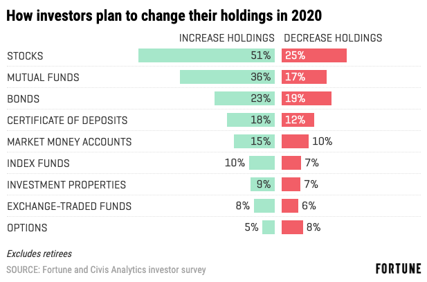 - … of non-retired investors plan to increase their stock holdings in 2020, while 25% plan to decrease their stock holdings.