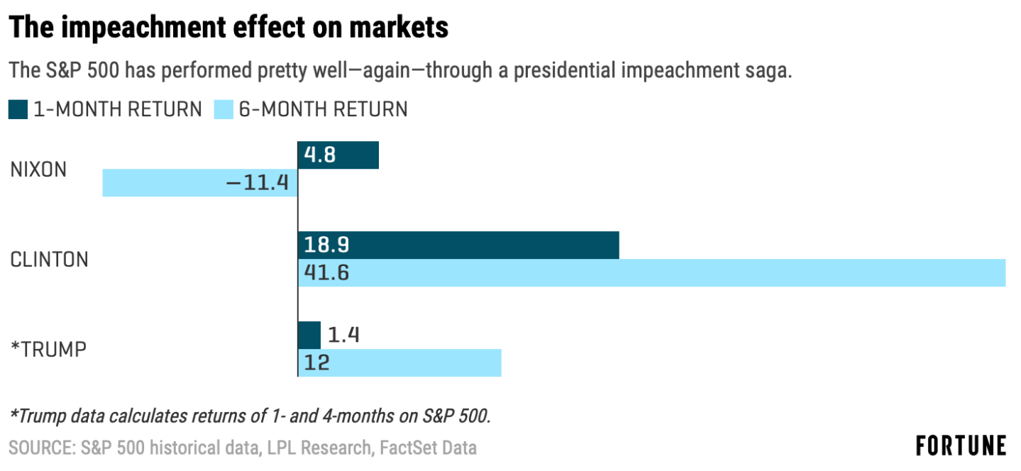 Historically, American presidential impeachments have had a mixed—lately, it’s been downright good—impact on markets. Paradoxically, when lawmakers rally to boot out of power the leader of the free world, investors tend to shrug it off.