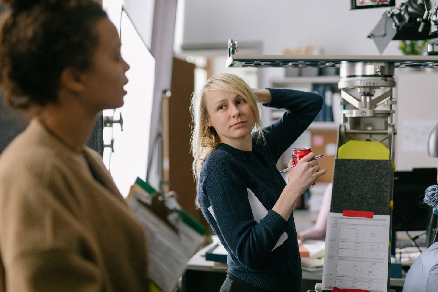 “I was definitely interested in gendered division of labor,” says Green, adding that she wanted to flesh out “the idea that women are often being given the tasks like caregiving duties, looking after children, and getting coffee, while the men get to stay on phone calls, sit in on meetings, and get quickly promoted.”