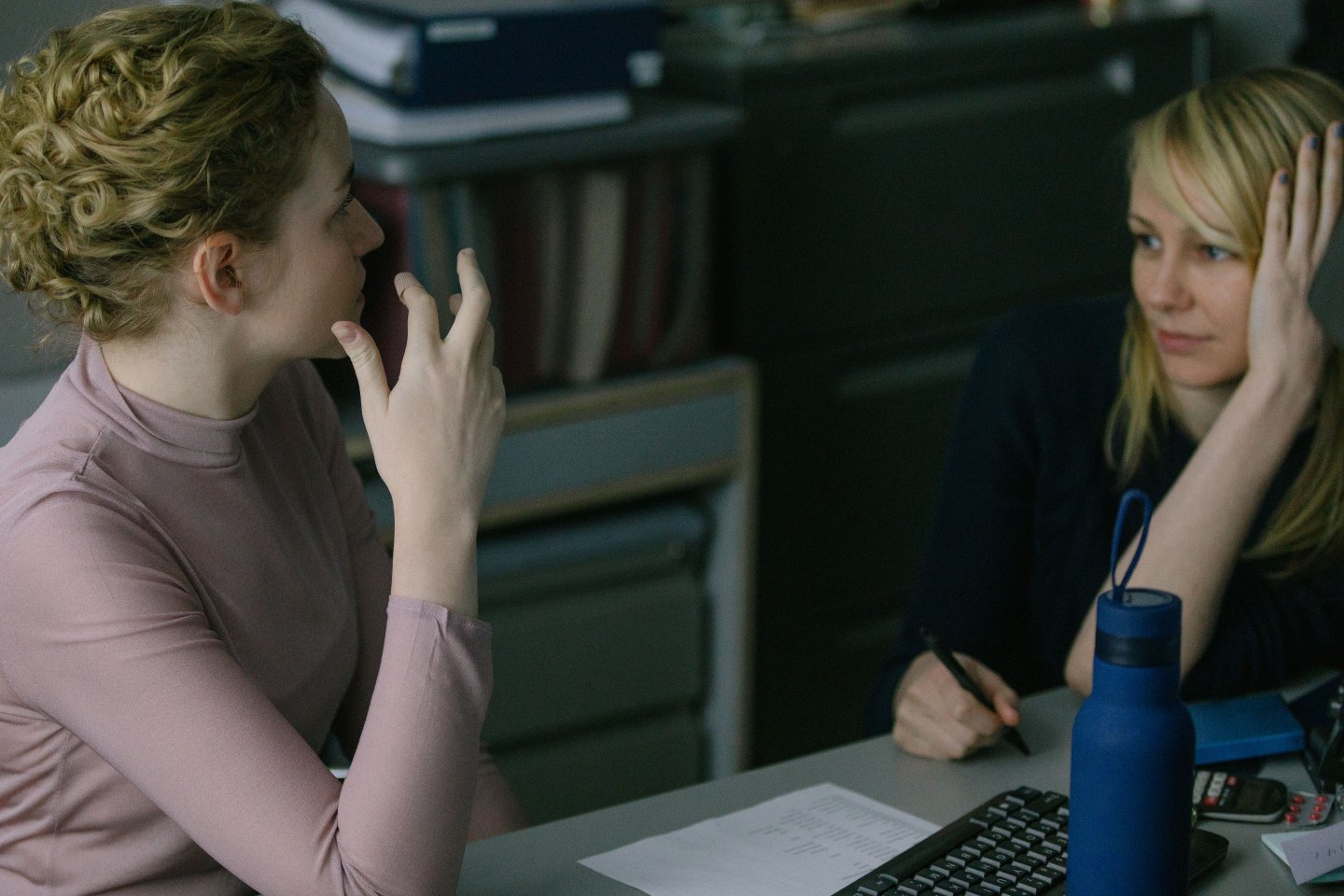 “I’d been told by a lot of people that HR departments are there to protect companies, not employees,” explains Green, who devoted 12 pages of her lean script to that scene. “I wanted that to be very clear. I wanted to look into gaslighting and this idea he could convince her that her argument doesn’t make sense, how he could poke holes in what she came in with so she ended up confused about her own thoughts.”
