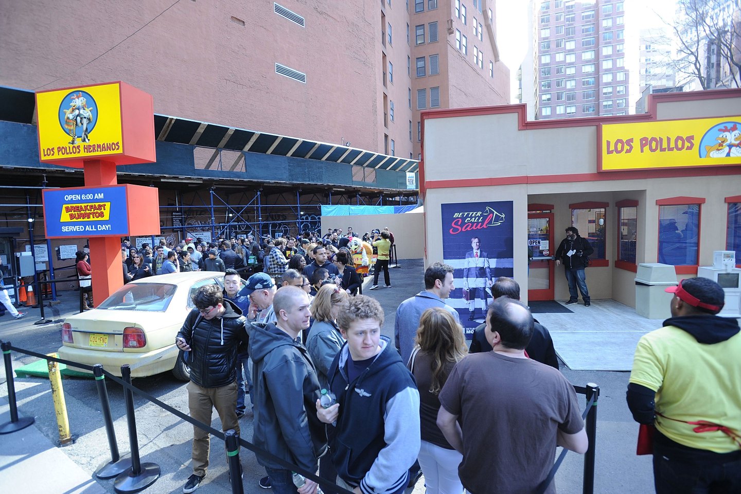 The sites featured various appearances by Odenkirk, Esposito, and Michael McKean (who plays Jimmy’s brother Chuck McGill), as well as chicken-costumed mascots and Jimmy’s beater car parked out front.