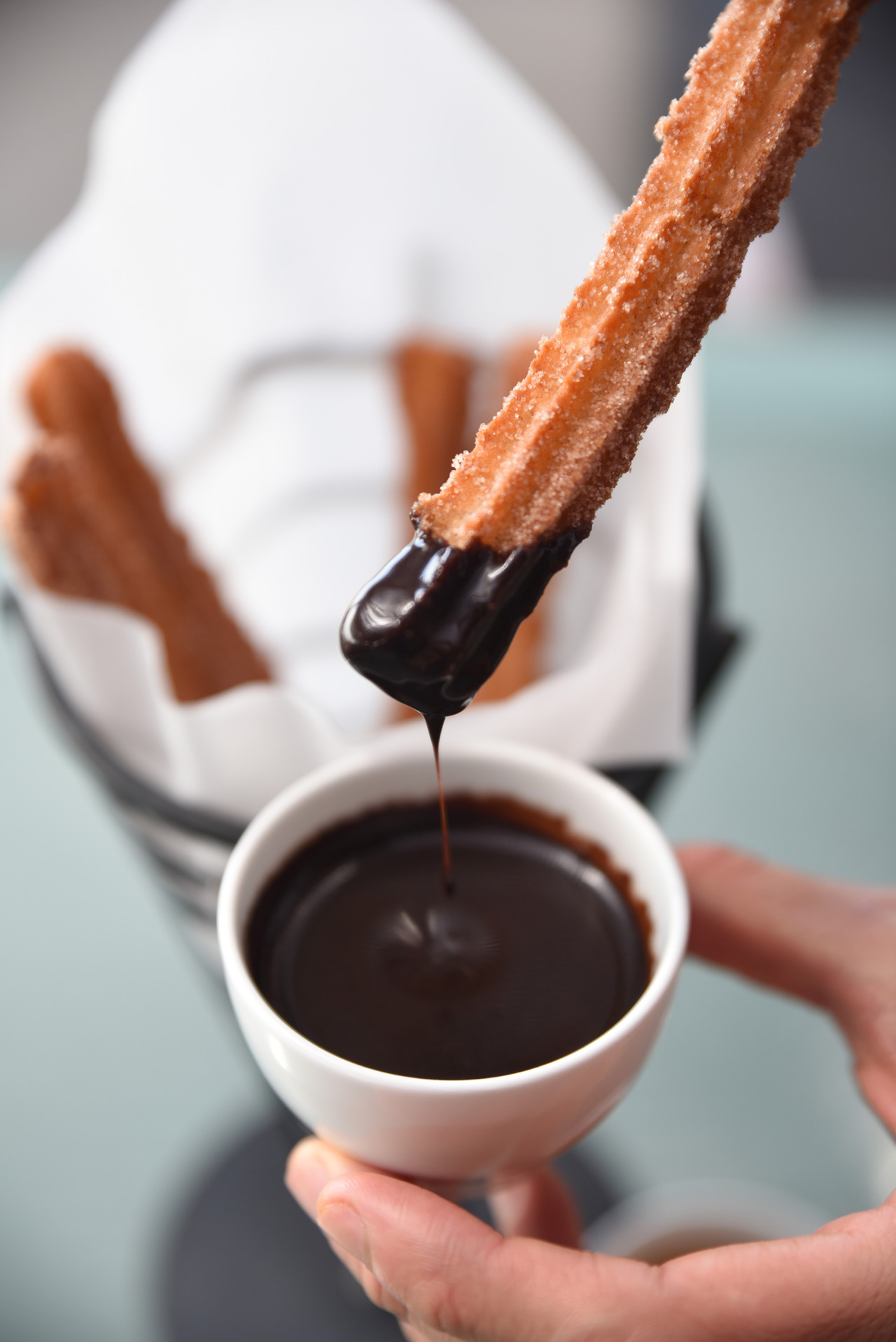 Another reminder, for those paying attention, is on Capa’s dessert menu. In a subtle nod to the popular park treat, executive pastry chef Rabii Saber added his deluxe take on churros. “Other restaurants in Orlando may have churros, [like in] the theme parks, but ours are different,” notes Saber, who was a James Beard Award semifinalist for outstanding pastry chef in 2019. One difference in Capa’s Churros de Madrid, Saber’s take on the classic Spanish dessert, is in the quality of the ingredients. Hot, fried dough is rolled in vanilla bean sugar and served with single-origin chocolate sauce and made-from-scratch dulce de leche caramel sauce.