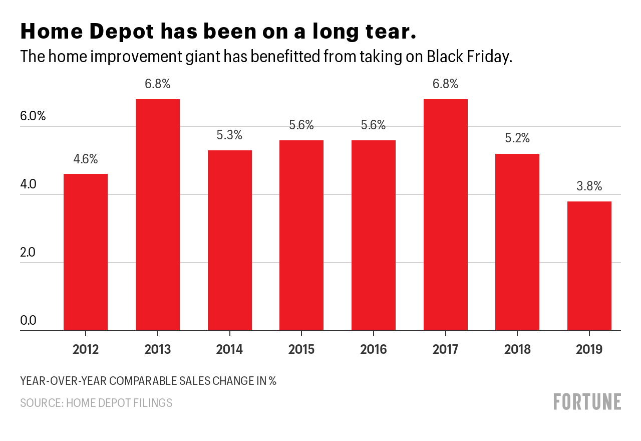 “Home Depot wasn’t a Black Friday destination,” Ted Decker, the company’s executive vice present for merchandising, tells Fortune. “We weren’t a gifting destination, we didn’t have a holiday decorations program.” Paint, nails, and plywood don’t exactly make for exciting holiday gifts.