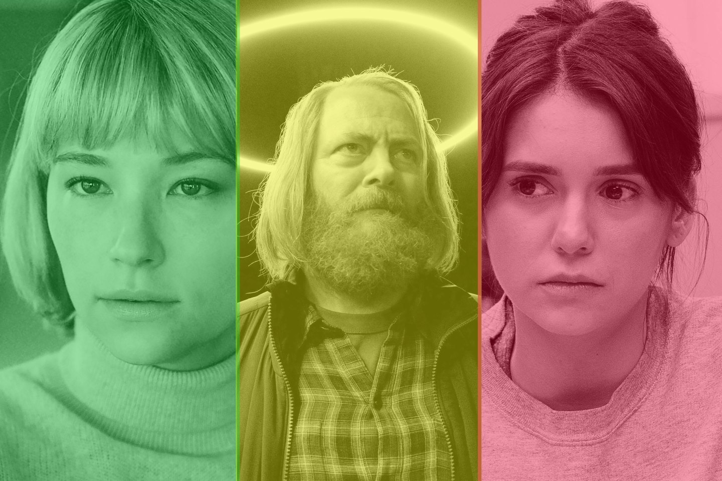 That brings us to Devs, Garland’s eight-episode series debuting this week on FX on Hulu. Enigmatic and visually mesmerizing in the extreme, it finds the writer-director (who pulled double duty on every episode) turning his reliably perceptive eye on the tech shamans of Silicon Valley. Within the heavily guarded perimeters of his main research facility, secured like a military base amid the California redwoods, thought leader Forest (Nick Offerman, sporting a gloriously sage beard) is developing something new through his company Amaya, a technological breakthrough that remains a mystery to near all of his sworn-to-secrecy workers. Two, Lily (Sonoya Mizuno) and Sergei (Karl Glusman), are dating; and when Sergei is promoted to work on Forest’s initiative, he’s stunned by what he discovers there.