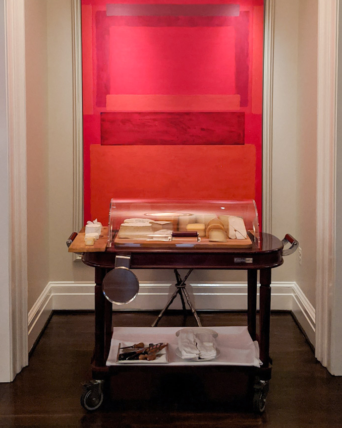 The cheese cart rolled over after the last savory course. It’s a Cadillac, all mahogany frame and silver hardware with a collection of wedges and wheels beneath the hemispheric plexiglass cover. My server went over each by heart, then sliced me off a piece of Nettle Meadow Kunik, a pungent cow-goat blend from the Adirondacks, plating it with thin crostini and nothing else. “I think fruits and marmalades take away from the cheese,” Wolf says. I prefer to desecrate mine with a little honey, but hey, Charleston is Cindy Wolf’s world, and we’re just living in it. She explains condiments are available on request, which probably should be written down on a menu somewhere so you know it is okay to ask.