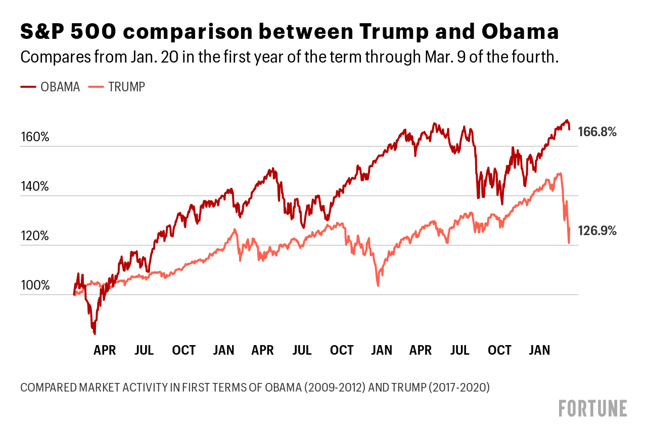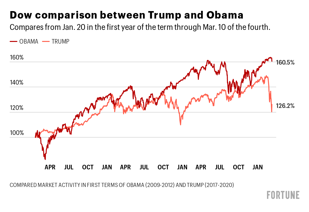 We all know a certain president likes to talk of having the “best” stock market. And, as such, Fortune has periodically compared market performance under Trump and Obama over comparable periods of time.