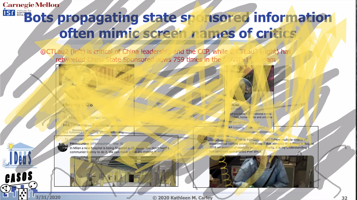 Yesterday, I tuned into a virtual seminar on the subject hosted by Kathleen Carley, a computer science professor at Carnegie Mellon University. She has been tracking the flow of COVID-19-related misinformation (falsities) and disinformation (intentional falsities) online. Shortly after she began presenting her research into bot-boosted social media fakery on Reddit, Facebook, and Twitter, a “Zoombomber” interrupted the broadcast, scribbling all over her slides to make them unreadable.