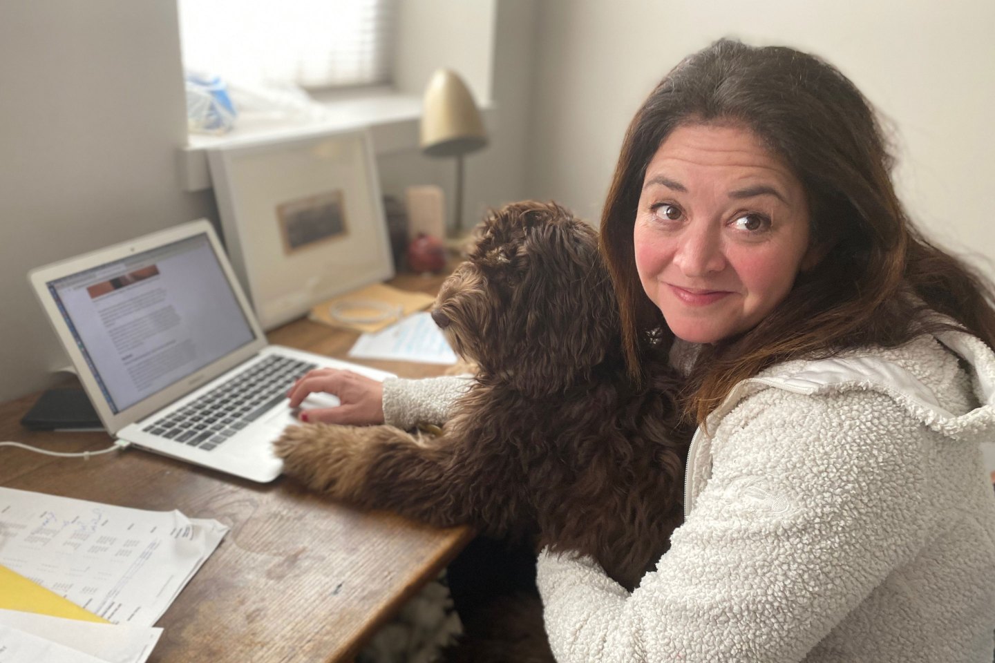 Kay: “Balancing working remotely with caring for kids. I also have a puppy, Annie, who likes to bark. Calls are trickier.”