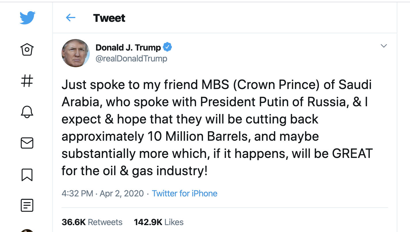 To skeptics, the tweet read like an April Fool’s gag. But the prices are holding steady as OPEC+ has scheduled a virtual meeting on Monday.