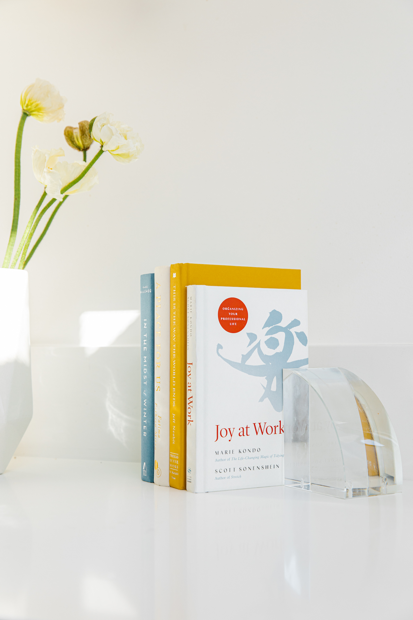 As a majority of the U.S. workforce is now working from home for the foreseeable future, Kondo says it’s more important than ever to establish and recognize which items and routines bring joy to the individual in the workplace—wherever that might be. Kondo says she keeps a small vase of fresh flowers on her desk. She also suggests doing something that marks the start of your workday. “I strike a tuning fork and diffuse essential oils to signal to my body that I’m switching gears.”