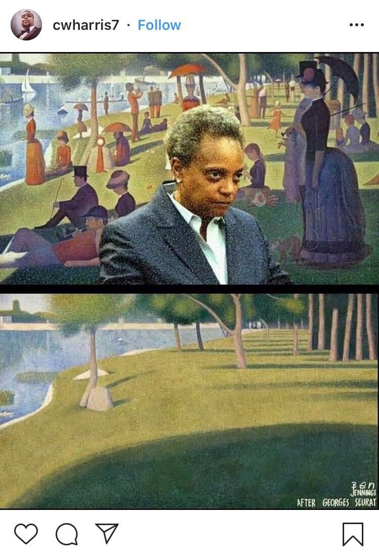 She first emerged as meme fodder in late March when she shut down Chicago’s lake front and adjacent parks after city residents defied the governor’s statewide stay-at-home order. Now in social media posts, her stern-faced likeness, assuming the role of the no-nonsense fun police, is seen guarding Chicago’s famed ‘Bean’ statue, clearing the table in Leonardo da Vinci’s “Last Supper,” and policing the Wizard of Oz’s yellow-brick road. (As a Chicago-area native, my feeds are filled with a frowning Lightfoot.)