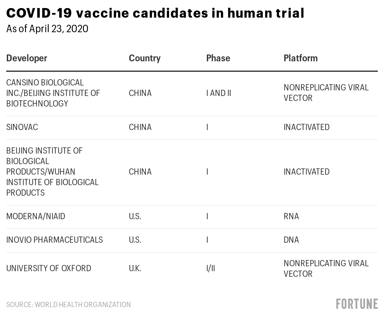 Inovio Pharmaceuticals started the first human trials of its vaccine in early April. The small Pennsylvania-based biotech company is funded in part by the Bill & Melinda Gates Foundation. Its work on COVID-19 is building on previous efforts to combat HIV, HPV, Zika, and hepatitis B.