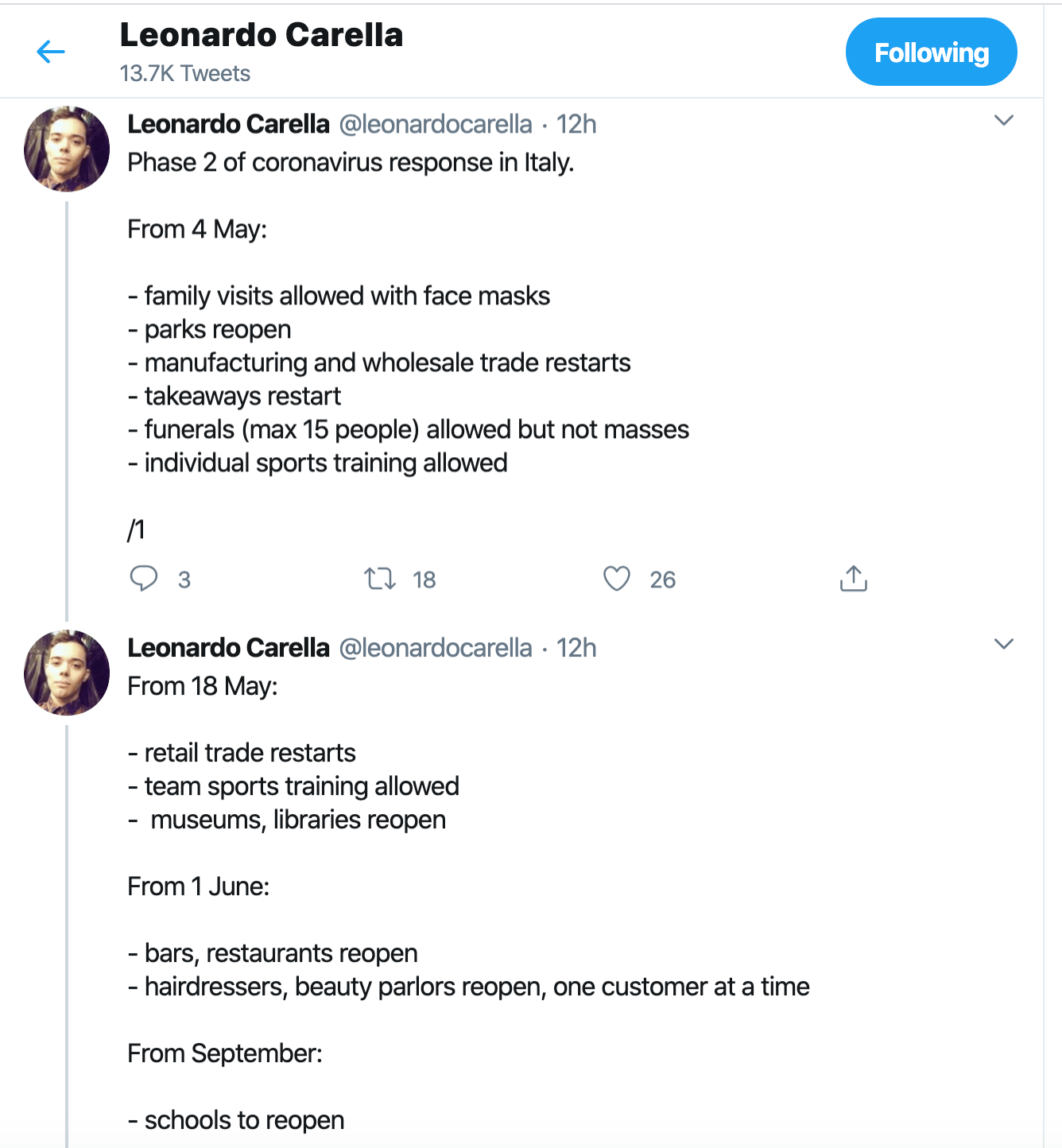 And, you can already see in Rome that businesses are jumping the gun. Bars are offering take-out cornetti and cappuccino before the permitted May 4 lifting of the ban. Meanwhile, policing the parks has been a hit-or-miss affair.