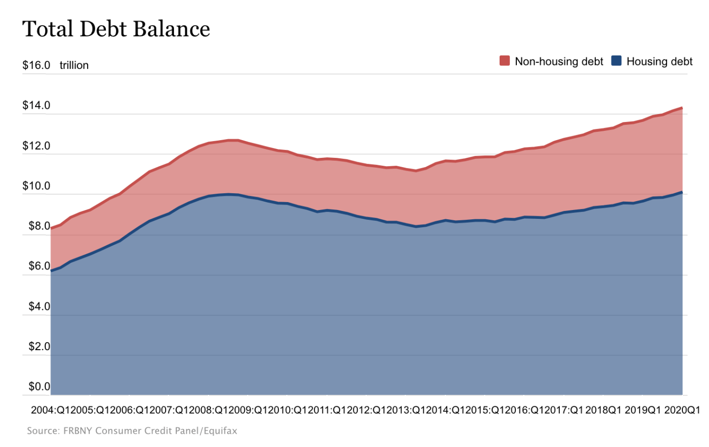 That’s why yesterday’s data is so troubling. The New York Fed released its quarterly report on household debt. The numbers showed the American consumer is $14.3 trillion in the red, a new record, as today’s chart from the New York Fed shows.