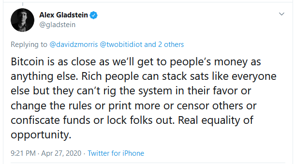 I got a refresher on one major argument for Bitcoin’s ability to fix deep social problems in an April conversation with Alex Gladstein, chief strategy officer of the Human Rights Foundation and, for the last couple of years, a passionate Bitcoin advocate.