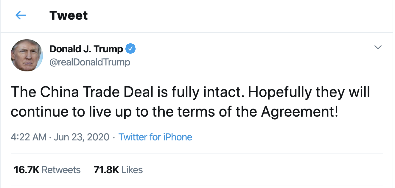 Good morning, Bull Sheeters. There were all kinds of fireworks after the bell yesterday—the figurative kind—when Peter Navarro, President Trump’s trade advisor, declared to a Fox News anchor the U.S.-China trade deal to be “over.” U.S. futures immediately sunk. The yuan went haywire; the Asian markets followed. And then Trump took to Twitter to say, no, no, no. It’s fully intact.