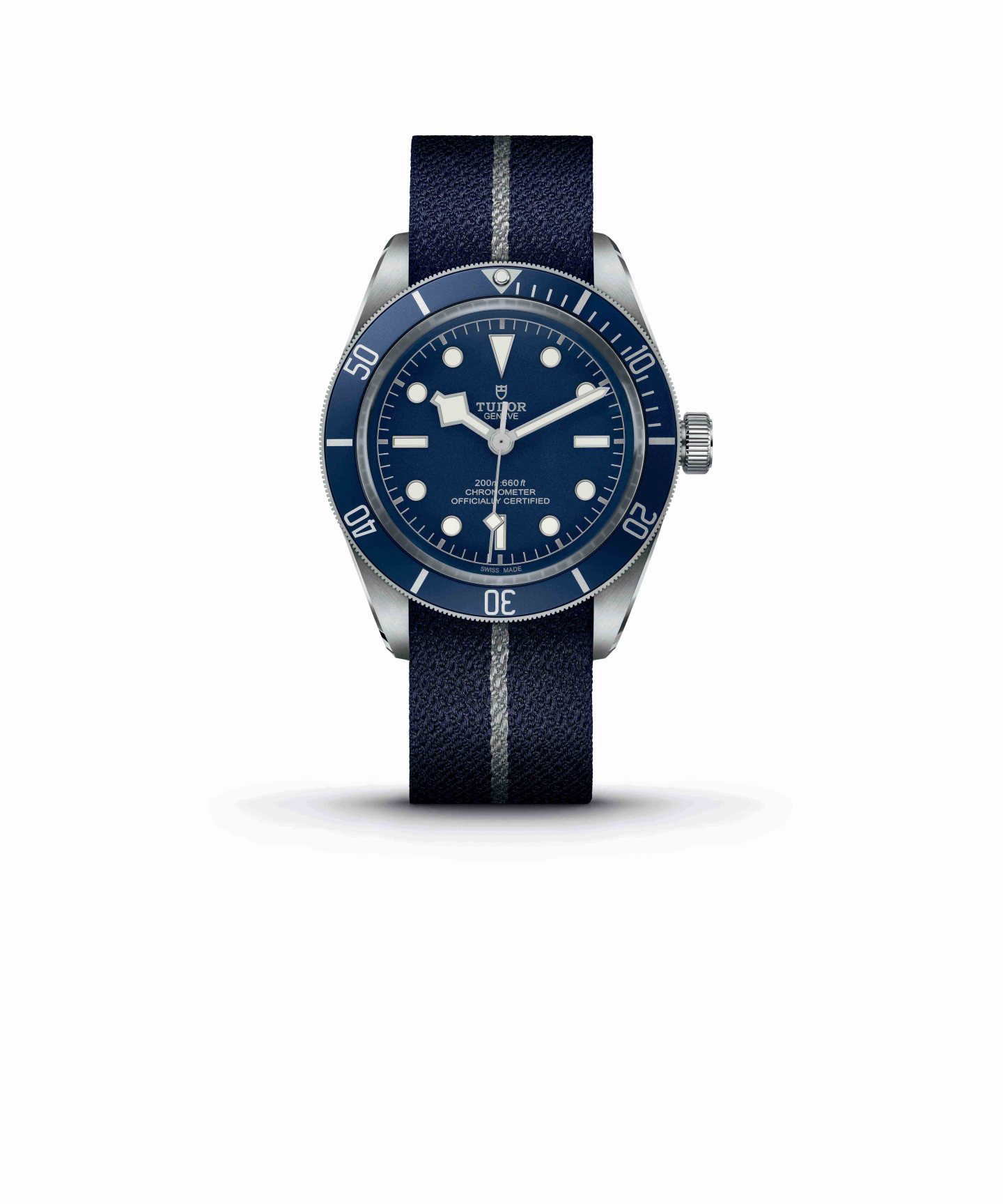 Today, Tudor is fulfilling that wish with the Black Bay Fifty-Eight in navy blue, just in time for summer. The watch is available on a steel bracelet ($3,700) or on a synthetic “soft touch” or fabric strap (both $3,375).