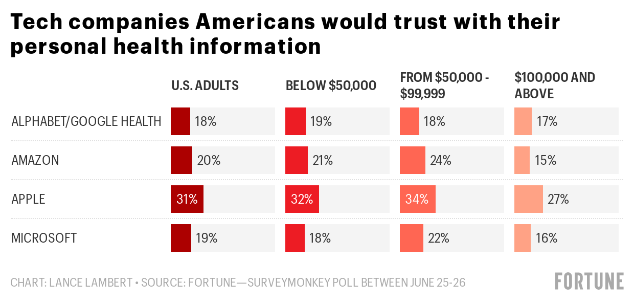 - …of U.S. adults trust Apple with their personal health information. That is the highest level of trust for any Big Tech company.