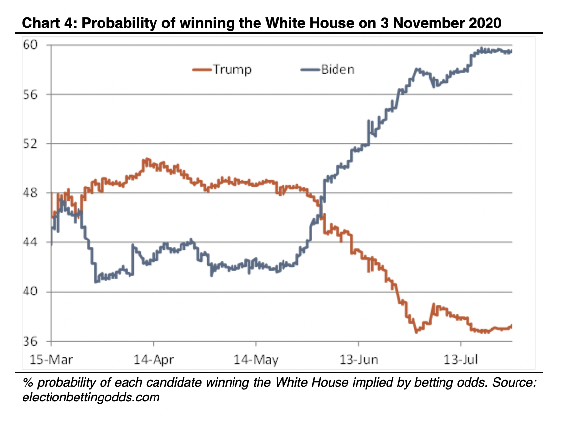 - The Dems and Republicans are “nowhere close to a deal” on the next round of stimulus spending and unemployment benefits. A lousy GDP reading will likely focus the collective minds in Washington.