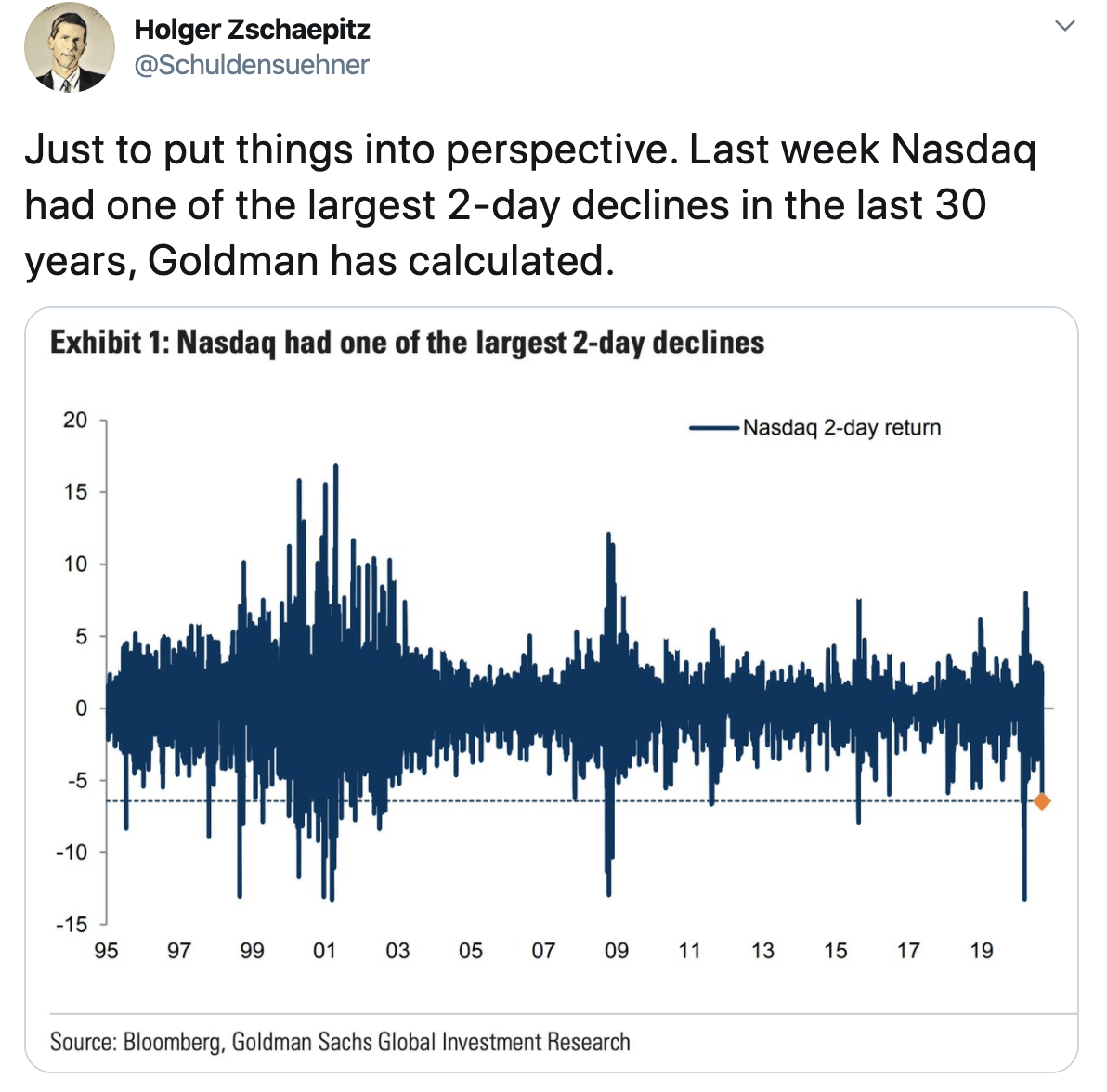 It was the worst sell-off in tech since March. In absolute terms, it was worse than that, says Goldman Sachs.