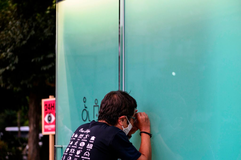 The result, unveiled August 5 in two locations near Shibuya ward’s Yoyogi Park, is attracting global attention. The reason? Ban’s restrooms are brightly lit boxes of colored glass—and completely transparent. Or at least they seem to be at first. The structures are fashioned from “smart glass” that renders them opaque after a user enters and locks the door.