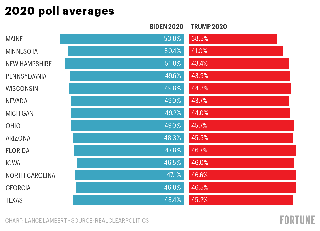 But this go around the President would need a much bigger upset: Democratic nominee Joe Biden leads Trump in nine states the President won in 2016, according to RealClearPolitics poll averages.
