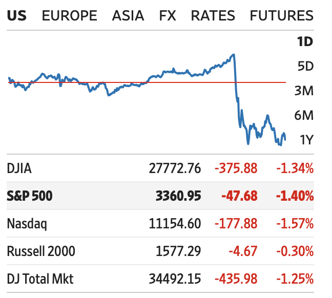 Good morning. With a single, abrupt tweet from President Trump late yesterday afternoon, an impressive market rally came to a crashing end. A speedy stimulus package, always remote (to this writer anyhow), looks all but dead now. And, well, this is how the markets felt about that news: