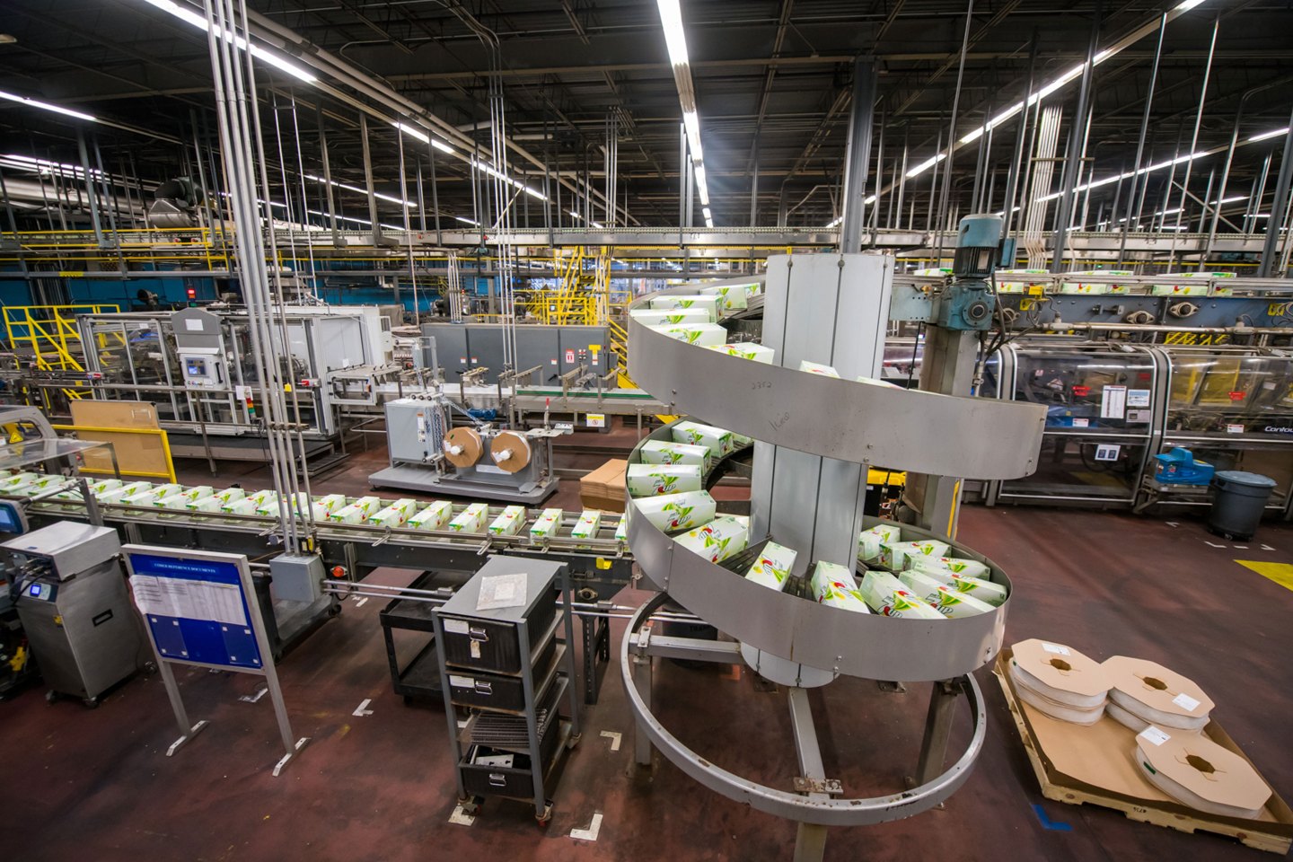 KDP ramped up production of 12-packs of cardboard-bound 12-ounce cans and cut back on bottles. KDP employs a direct-store-delivery or DSD model, meaning that in three-quarters of the nation, KDP’s 6,000 trucks deliver shipments from 160 distribution centers directly to stores as varied as a 7-Eleven to a Kroger. Then, a KDP merchandiser wheels a “U-boat” cart carrying the brands to the beverage aisle and personally stocks the shelves. The merchandisers often visit a big store several times a week for three or four hours. They transmit up-to-the-minute updates on what’s selling and how fast to KDP’s data centers. “If you just ship to the retailer’s warehouse, you don’t get that kind of data and don’t realize for another week what’s selling. By then it’s too late,” says Gamgort.