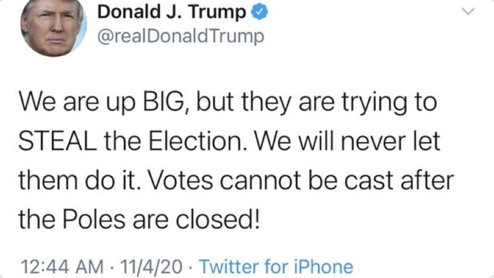 President Trump himself has provided some choice material to the chattering masses on Twitter. In a now deleted early-morning tweet, the President punctuated his stop-the-vote-count directive with a meatball-size malapropism that quizzically pointed out, “The Poles are closed.”