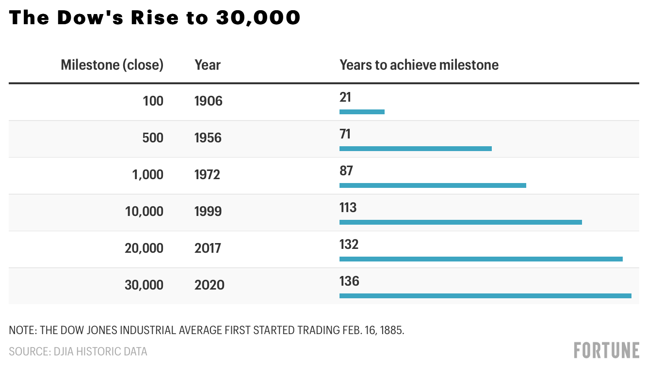 The Dow Jones Industrial Average crossed the 30,000 threshold for the first time ever Tuesday, capping an astounding run from the depths of the pandemic last spring when the index bottomed out just above 18,000.