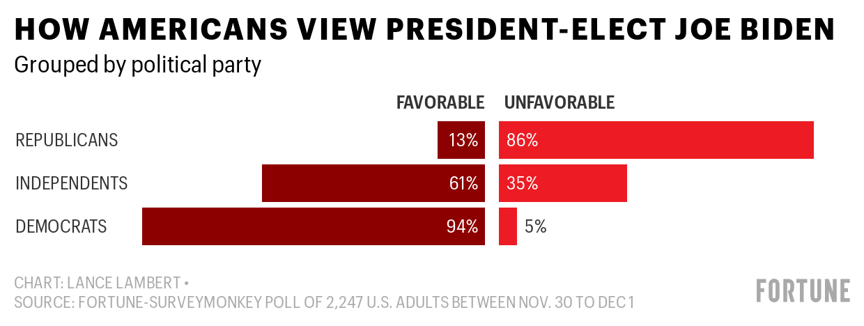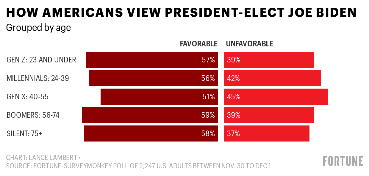 President-elect Joe Biden is enjoying a post-election, pre–White House bounce in popularity, according to a new Fortune-SurveyMonkey poll.