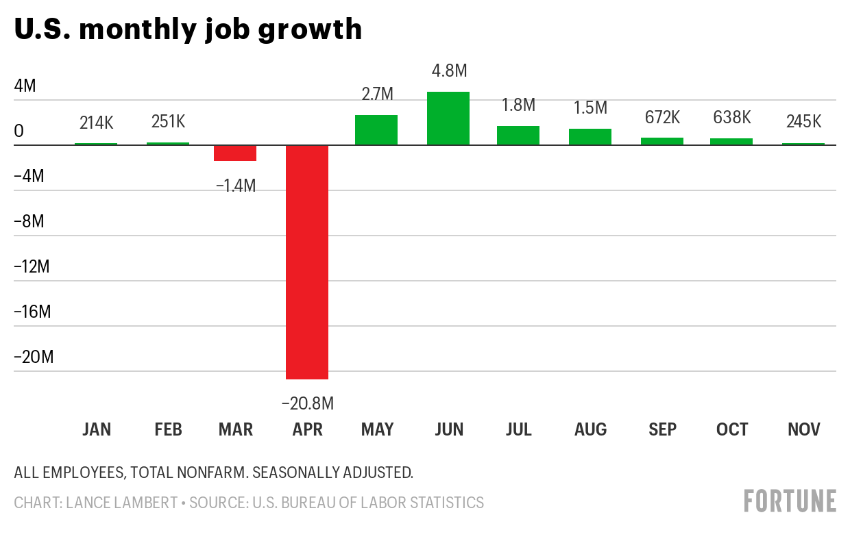 Michelle Meyer, head of U.S. economics at Bank of America, is slightly more optimistic: “There’s a clear economic case for the stimulus, but I think it’s important to remember that the economy has continued to recover, has continued to heal,” she tells Fortune. “Another round of stimulus will simply speed up that healing process in a way that could be very powerful for the trajectory of growth once we have the vaccine.”