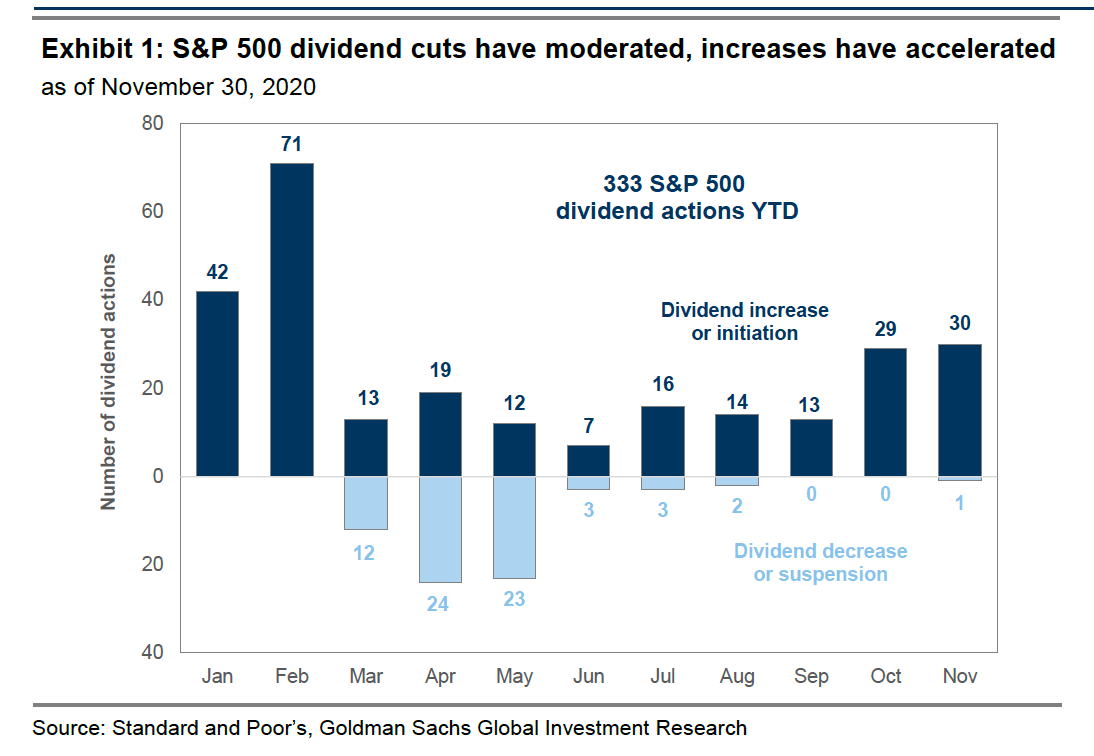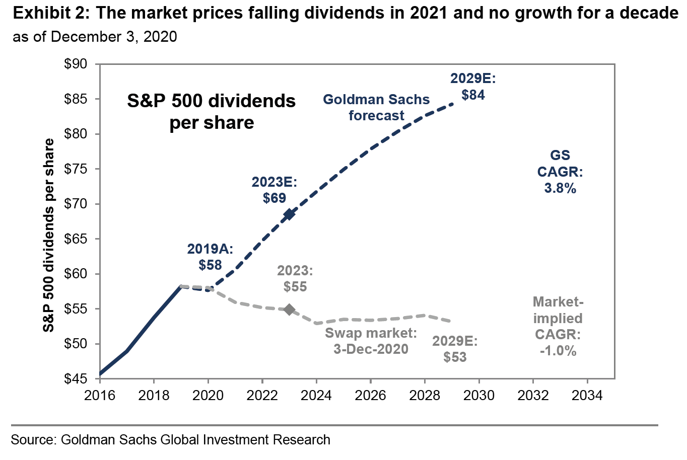 Goldman expects an earnings rebound in 2021, and that “will lead to 5% dividend growth in 2021.”