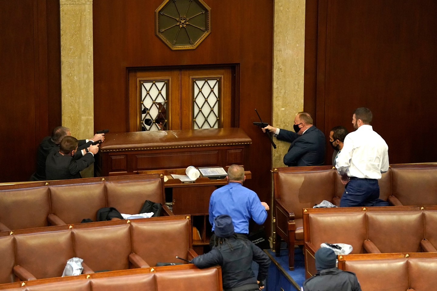 Those present at the scene reported that gunshots were fired in the House chamber and that there was currently a standoff between Capitol police and rioters. Staff in the Senate press gallery advised journalists that they would be locked in the Senate chamber for their protection.
