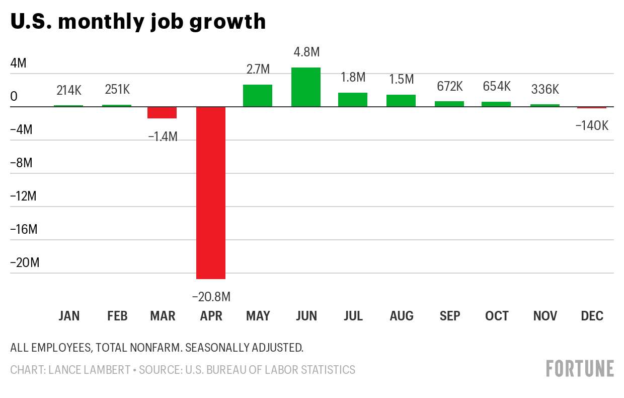 The unemployment rate for December remained flat from November at 6.7%, and the economy lost 140,000 jobs for the month—the first monthly net loss since April.
