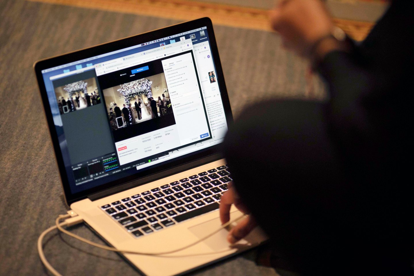 For Lindsey and Cherish Conklin, the husband-and-wife duo behind videography company, Le Rêve Films, that has meant investing in new equipment and harnessing alternative techniques to improve the quality of the livestream. They now have Hollyland wireless transmitters that allow them to broadcast a wedding without long cords attached to the computer and their professional cameras. They utilize a livestream switcher from Blackmagic Design so that they can swap camera angles in real time, like what you’d see at a Super Bowl halftime show. They roll with a Teradek that harnesses a stronger Internet signal when streaming outside on, say, a beach, so that they can minimize the risk of disruption for the at-home audience.