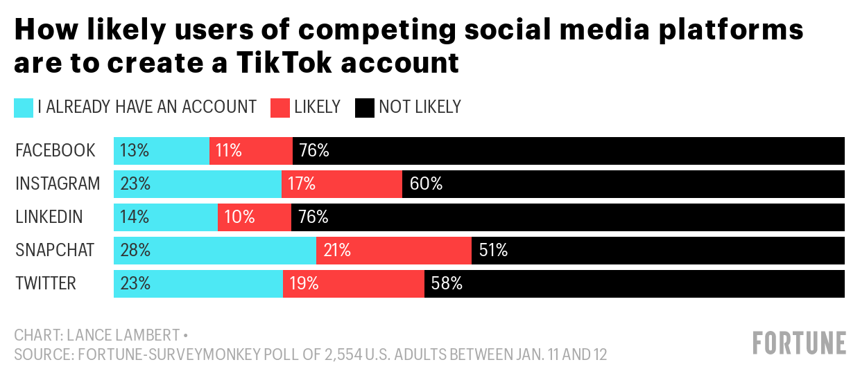 TikTok could be closer to surpassing its peers than our data suggest: Fortune Analytics doesn’t poll Americans under 18 years old—but they make up a large chunk of TikTok’s users.