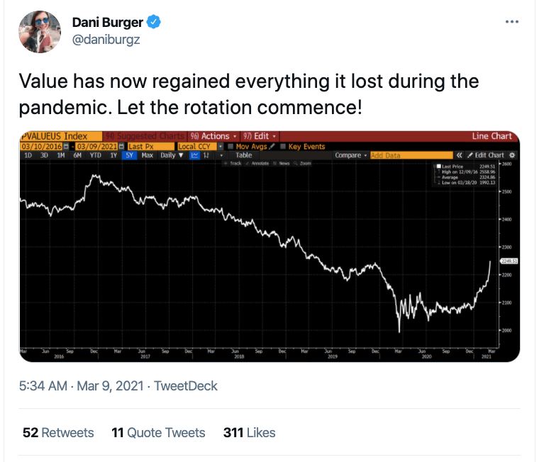 That should add rocket fuel to the reopening trade—so good news for small caps. Of course, there are tradeoffs. First, there’s the question of who’s going to eventually foot the bill for such a generous bag of goodies. And then there’s inflation.