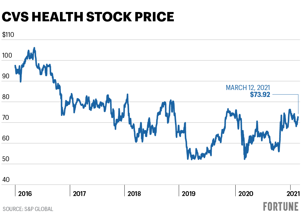 But like many of us, Lynch is also looking beyond the pandemic. She’s on what she calls the “march to 100”—that is, a $100 stock price, up from the $65 the stock averaged over the past year (the share price has slowly recovered from the hit it took after the 2018 Aetna acquisition, when Wall Street judged that the company overpaid for the insurer). Lynch has plans to digitize CVS’s health care delivery, providing services like digital appointments with medical professionals well beyond the pandemic. She aims to accelerate the use of alternative sites of care—that is, CVS stores instead of doctors’ offices—for patients. And along the way, she must solidify this new version of CVS in the minds of both consumers and investors. “When people think about health, I want them to think about CVS Health,” Lynch says.