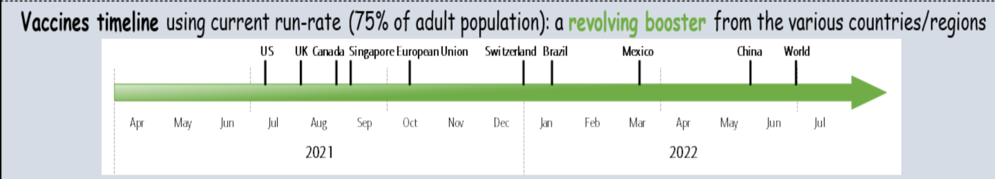 Over and over again, vaccination rates is the metric economists cite in presenting their bull case for economic growth. According to BofA economists, the U.S. is on pace to hit 75% vaccination rate by late-June. The U.K., Canada and Singapore could hit that milestone later in the summer, and the European Union by early autumn.