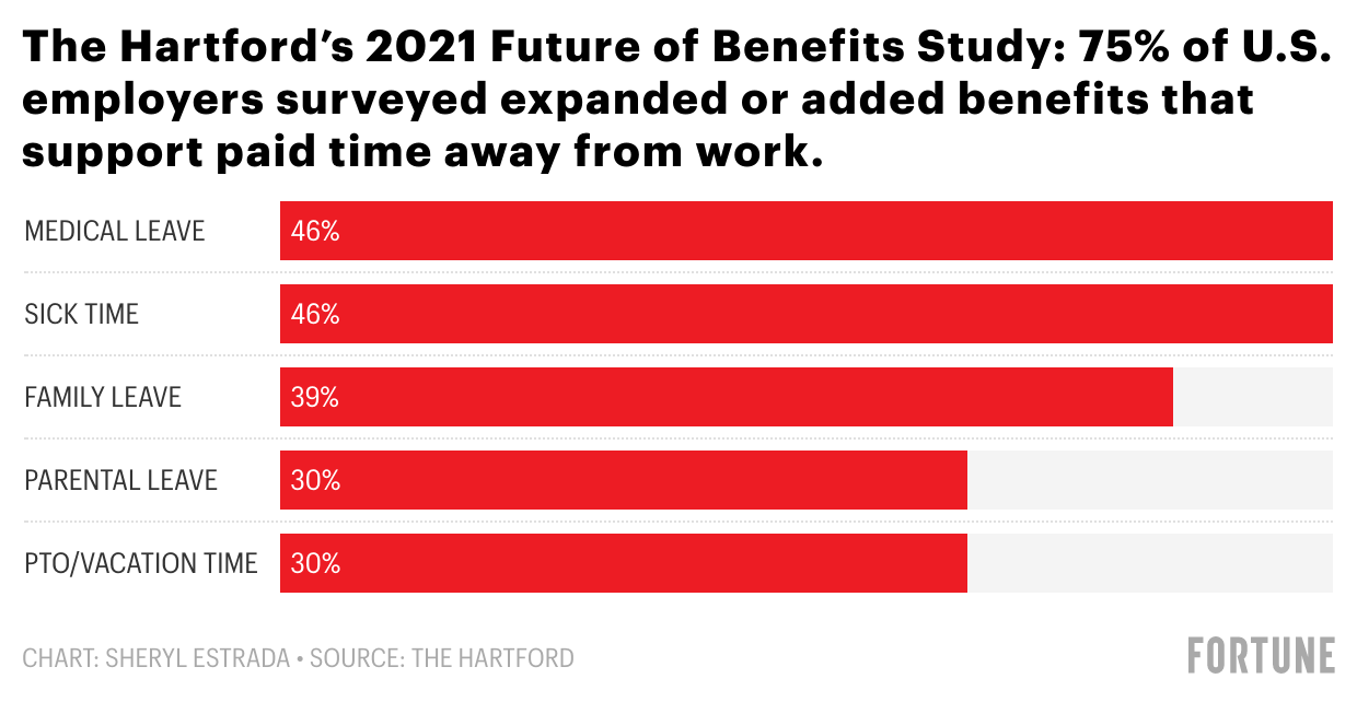 Taking leave: Employers reported increasing the various types of paid time away from work during pandemic, according to new research from The Hartford.