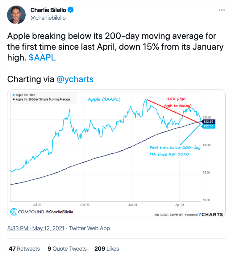 According to FactSet, $122.81 is the proverbial line in the sand—AAPL’s 200-day moving average. It closed yesterday at $122.77, and it’s down in pre-market trading this morning.