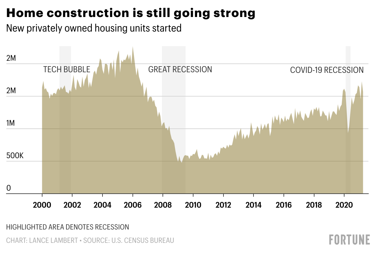 “We went to levels previously unimaginable, and this futures pullback will give buyers room to pause here and should lead to a bit more toned-down and rational pricing environment,” Steve Loebner, director of risk management at Sherwood Lumber, told Fortune. “I feel the extreme craziness is in the rearview mirror at this point.”