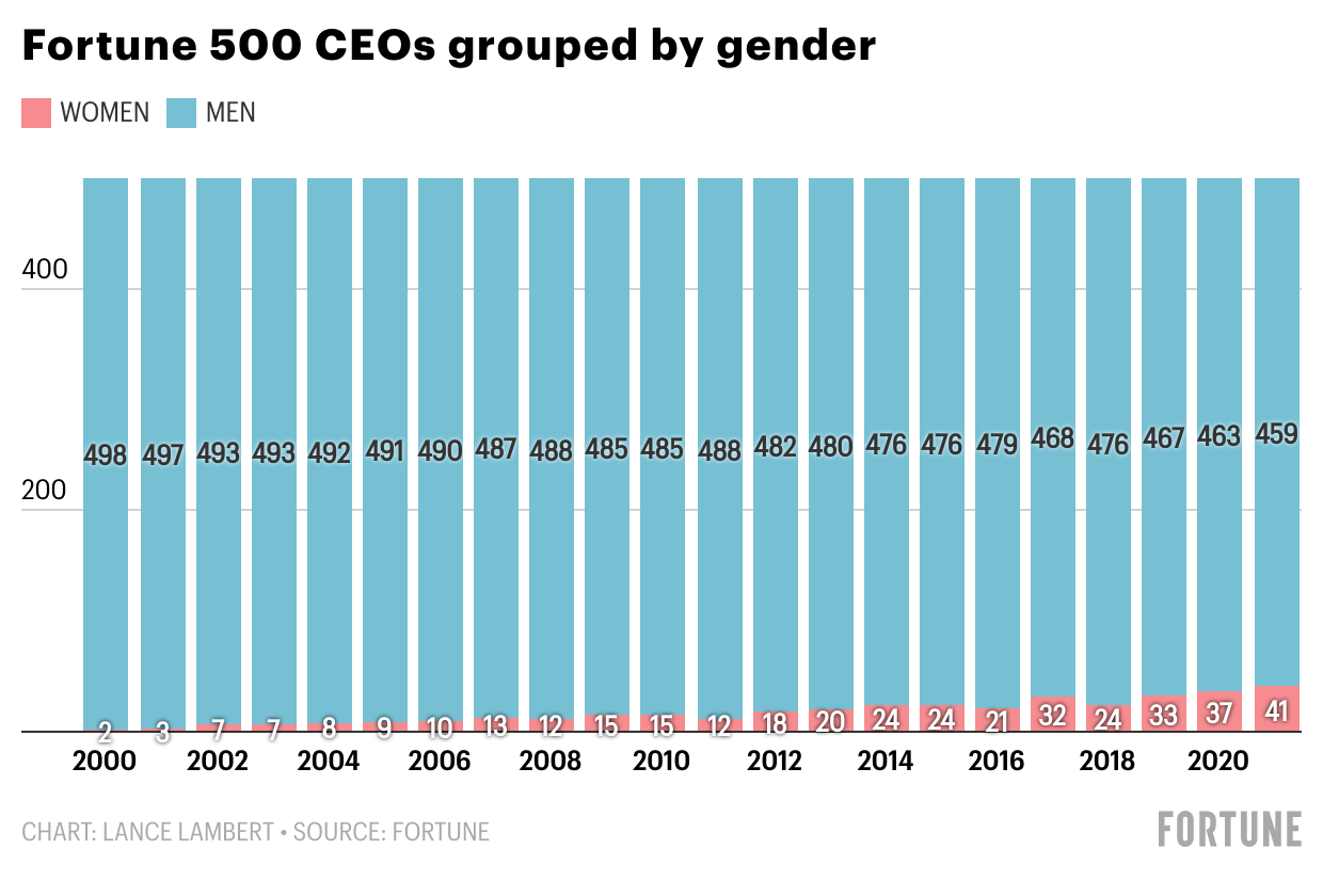 In 2021, the number of women running businesses on the Fortune 500 hit an all-time record: 41. But that’s not all. For the first time two Black women are running Fortune 500 businesses (Roz Brewer of No. 16 Walgreens Boots Alliance and Thasunda Brown Duckett of No. 79 TIAA). And another executive is making history at the helm of the highest-ranking business ever run by a female CEO (Karen Lynch of No. 4 CVS Health).